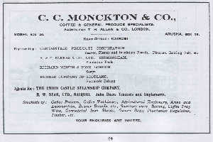 The entry you found was a copy of an advert in a little booklet published in 1929 to promote Arusha town. Advert obviously by a firm called CC Monckton who were agents for HW Sear.